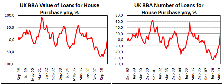 Число займов для приобретения домов в Великобритании в мае выросло до 31,162 тыс., по сообщению Британской Банковской Ассоциации (BBA). Средний рыночный прогноз составлял 29,5 тыс., так что фактические данные вышли несколько лучше. По сравнению с предшествующим годом число займов увеличилось на 15%, что является первым ростом год к году за 29 месяцев. Однако оптимизм от подобного сравнения нивелируется тем, что в прошлом году рынок нырнул вниз в эти месяцы, что делает очень слабую базу для сравнения. Кроме того, переключившись на показатели объема выданных кредитов, получим заметно более слабую динамику. Объем выданных кредитов на 1,5% ниже показателей предшествующего года. Абсолютные цифры остаются крайне слабыми по историческим масштабам, что сохраняет довольно слабые перспективы для финансового сектора. Помимо статистики сегодня стоит обратить внимание на речь Спенсера Дейла, члена монетарного комитета Банка Англии, в отношении инфляции. Он назвал рост инфляционных ожиданий «пробуждающим звонком» для членов монетарного комитета. Представитель БА заговорил также, что политика Банка в будущем должна принимать в расчет не только инфляцию, но также и динамику цен активов, а также экономические дисбалансы. Вновь от Банка Англии мы услышали о необходимости роста расходов и ВВП в номинальном выражении, что при условии падения цен на сырье заставит банк вновь взглянуть на возможности давления на курс стерлинга. Перед американской сессией падение gbp/usd было остановлено в районе 1,62, все еще не сломав картины большого треугольника. Рынки очень волатильны, но предпочитают оставаться в рамках диапазонов.