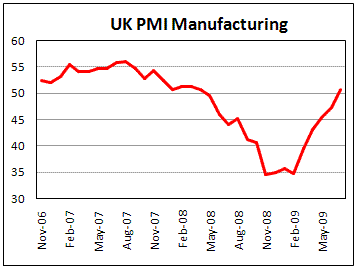 Производственный PMI Великобритании вырос до 50,8 в июле, впервые за 15 месяцев переместившись в зону роста. «Дно» по индикатору было достигнуто в октябре, одновременно с наиболее острой фазой кризиса. Если же корреляция состояния финансового сектора и индикатора PMI сохранится, то его рост сигнализирует о начале стабилизации экономики и постепенном ее восстановлении. Усиление производственной активности может благотворно отразиться также на состоянии рынка труда, препятствуя дальнейшему масштабному росту уровня безработицы. Это очень позитивный сигнал, на производственную активность обращал внимание и Банк Англии, ориентируясь в своей политике. Более сильные, чем ожидалось, цифры по производственной активности повлияли на дальнейшее укрепление фунта к доллару. Этого сообщения в сочетании с ростом оптимизма на площадках хватило для того, чтобы фунт/доллар достиг максимального уровня с октября прошлого года, превысив 1,68, более чем на половину отыграв снижение к доллару в течение банковского кризиса. Такая динамика может вызывать усиление спроса, приведя к новым покупкам по паре. Корректируется стерлинг и к евро, торгуясь на максимальных уровнях за последний месяц с вероятной ближайшей целью на 0,84. В то же время усиливаются и коррекционные настроения после ралли почти на четыре фигуры с американской сессии в пятницу. Снижение ниже 1,68 открывает возможности для покупок пары.